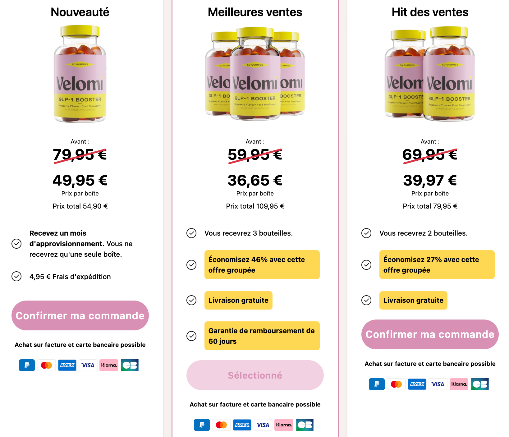 Les gommes Velomi GLP-1 offrent une approche naturelle et douce pour soutenir l'activité du GLP-1, sans médicaments sur ordonnance. Elles séduisent les personnes recherchant un complément alimentaire non invasif, facile à intégrer à leur quotidien. Les avis soulignent l'efficacité du produit pour réduire les fringales et favoriser la concentration et l'énergie tout au long de la journée.